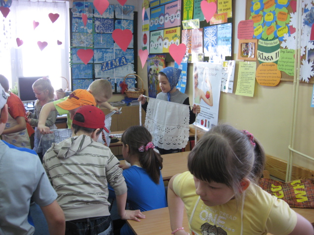 ################################################## Hodujemy fasolę Wraz z nastaniem wiosny zamieniliśmy się w małych ogrodników. Założyliśmy hodowlę fasoli i przez kolejne dni obserwowaliśmy jej rozwój. Wszystkie spostrzeżenia zapisywaliśmy w przygotowanych do tego celu kartach obserwacji. Uprawa fasoli bardzo nam się spodobała. Każdy z nas dbał o codzienne jej podlanie orz zapewnienie odpowiedniego dostępu światła słonecznego. Oto efekty naszej hodowli. Wychowawca klasy II : Renata Turska ~~~~~~~~~~~~~~~~~~~~~~~~~~~~~~~~~~~~~~~~~~~~~~~~ W kręgu teatru Ostatnio bardzo dużo czasu poświęciliśmy na zagadnienia związane z teatrem. Poznaliśmy zajęcia pracowników teatru, sięgnęliśmy też do jego historii. Aby bliżej poznać emocje związane z aktorstwem przygotowaliśmy inscenizację „Rzepiki”. Najbardziej bliski dziecku jest teatr kukiełkowy. W związku z tym zamieniliśmy się w lalkarzy i przygotowaliśmy laki teatralne. Oto niektóre z nich: Wychowawca kl. II – Renata Turska ######################################################## Dzień Kobiet w klasie II 8 marca obchodziliśmy Światowy Dzień Kobiet. Również dziewczynki z klasy II Szkoły Podstawowej w Strzyżewie miały okazję do świętowania. Rodzice zaskoczyli nas wspaniałymi upominkami. Nasi koledzy złożyli nam wspaniałe życzenia – mamy nadzieję, że się spełnią. Chciałybyśmy, aby taki był każdy dzień, nie tylko ten jeden w roku. Wychowawczyni: Renata Turska *************************************************************** W poszukiwaniu wiosny Z niecierpliwością czekamy na przyjście wiosny. Chcąc podpatrzeć, czy może gdzieś się już przyczaiła, wybraliśmy się jej tropem. Poszliśmy nad rzekę wypatrując pierwszych zwiastunów wiosny. Niestety, nie znaleźliśmy ich zbyt dużo, ale mamy nadzieję, że wkrótce pojawią się one z całą mocą. Wychowawczyni: Renata Turska *********************************************************** Smacznie i zdrowo Na zakończenie cyklu zajęć związanych ze zdrowiem przygotowaliśmy sałatkę warzywną. Rodzice przygotowali nam produkty, które odpowiednio pokroiliśmy tworząc sałatkę. Wykonując ją, doceniliśmy pracę naszych mam, które codziennie przygotowują nam posiłki. Nauczyliśmy się też bezpiecznie posługiwać ostrym narzędziem, jakim jest nóż oraz pogłębiliśmy umiejętność współpracy w zespole. Wspólne przygotowywanie sałatki dostarczyło nam wiele radości i przyjemności. Uwierzcie nam – sałatka była bardzo smaczna. Wychowawczyni: Renata Turska *******************************************************