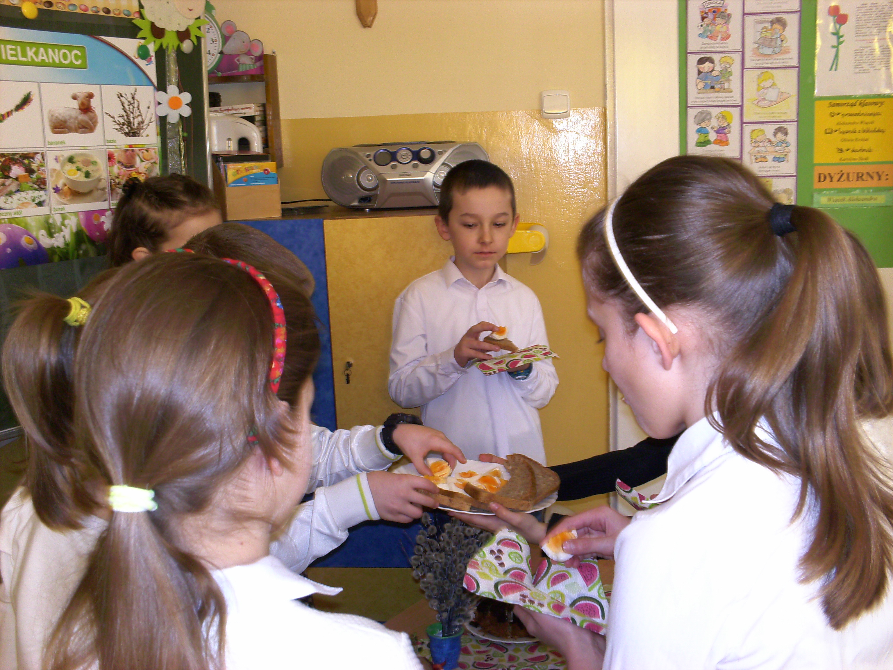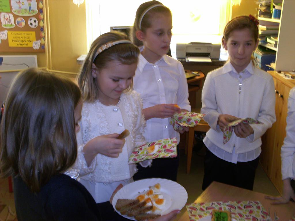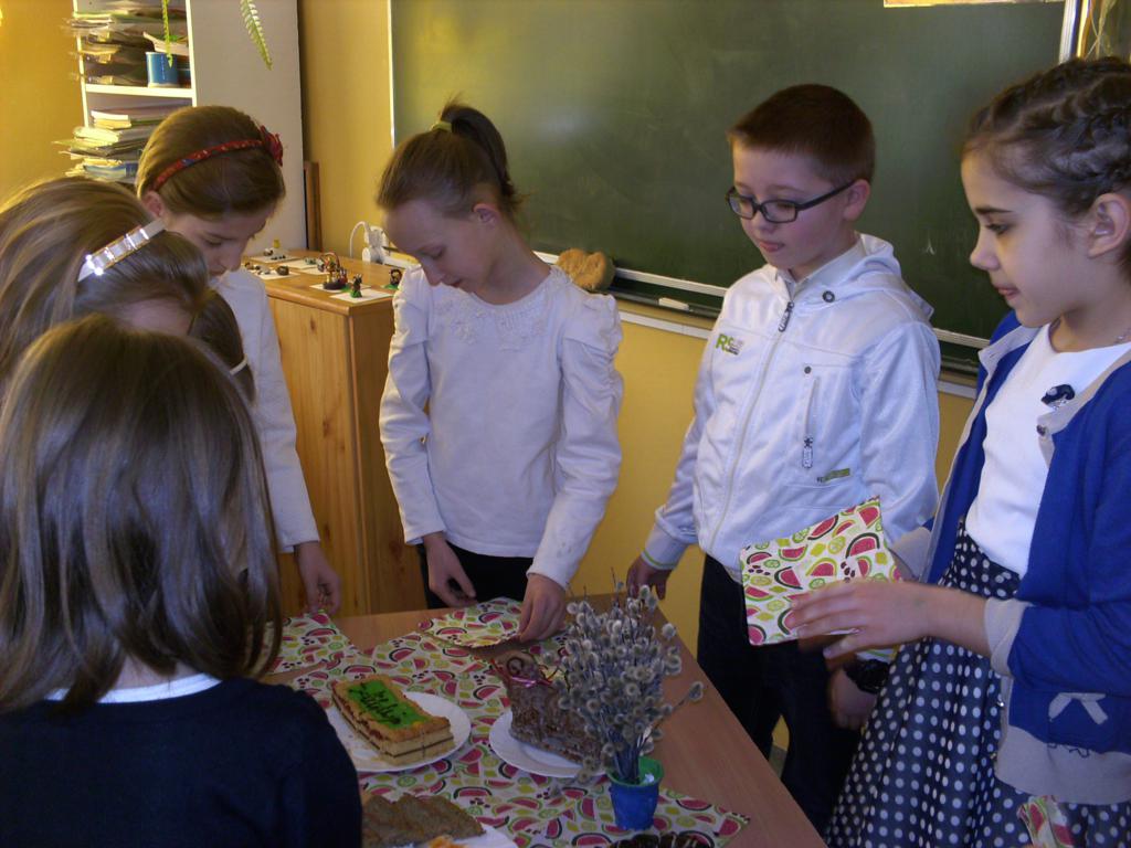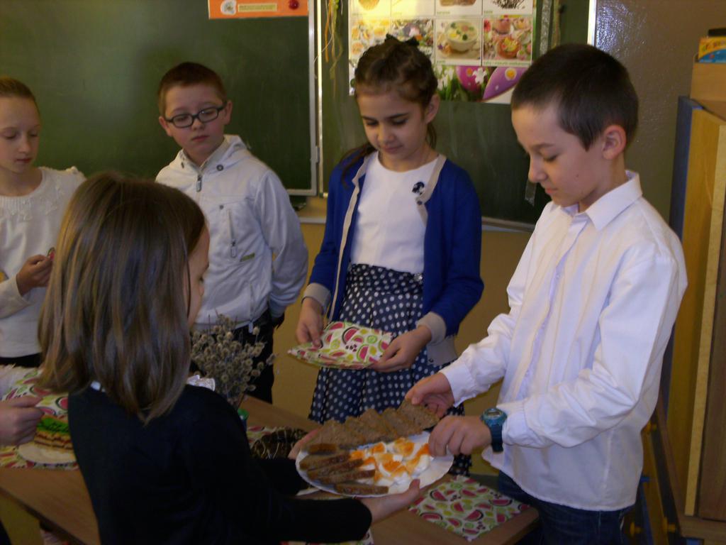 Wszyscy lubią święta. Klasa trzecia również postanowiła je uczcić, organizując klasowe spotkanie z okazji Wielkanocy. Było tradycyjne dzielenie się jajkiem, składanie życzeń, częstowanie babką i mazurkiem.