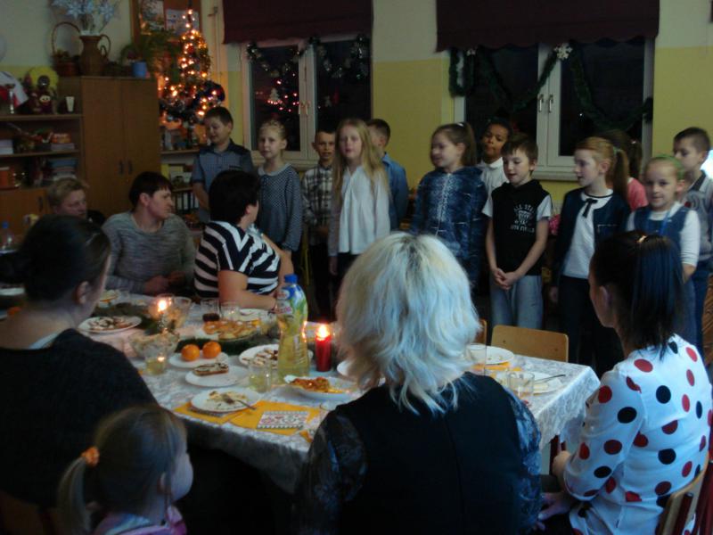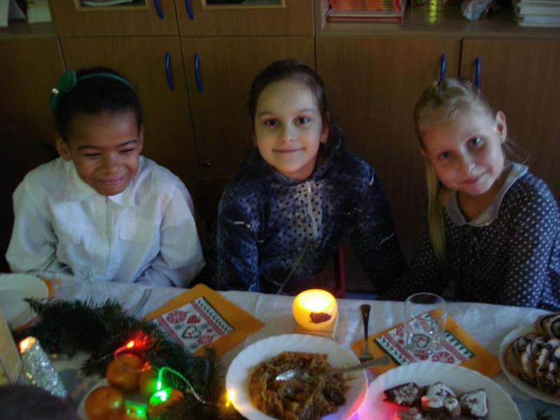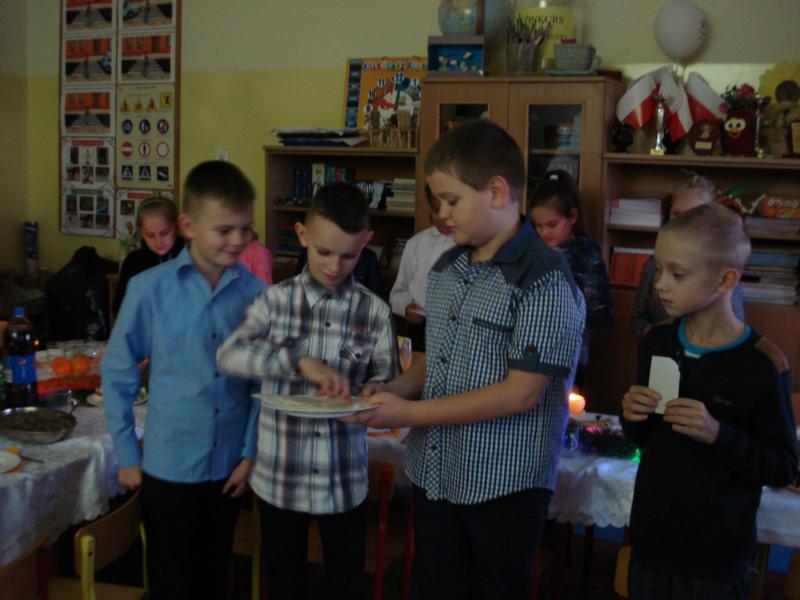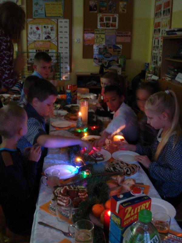 ciasto. Zgodnie ze zwyczajem wieczoru wigilijnego w klasie rozległ się dźwięk